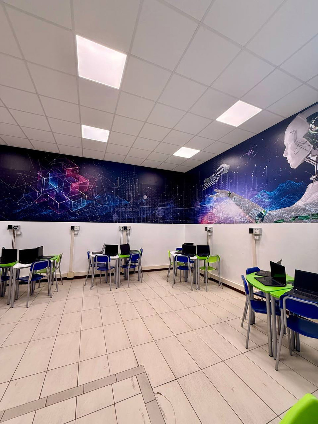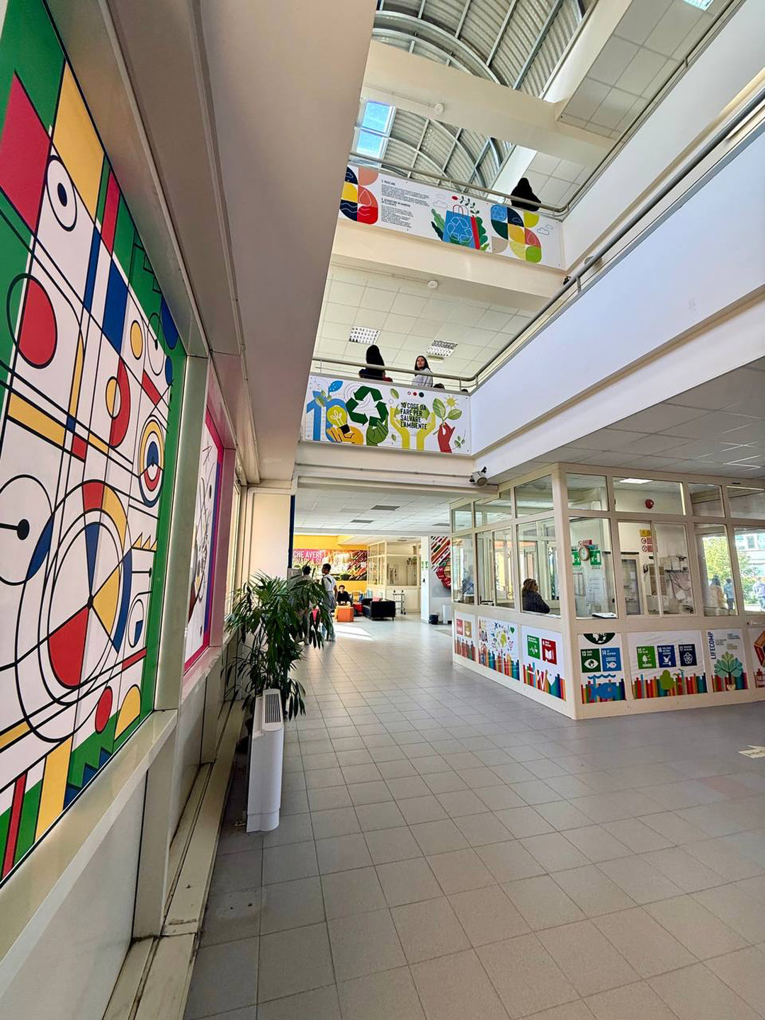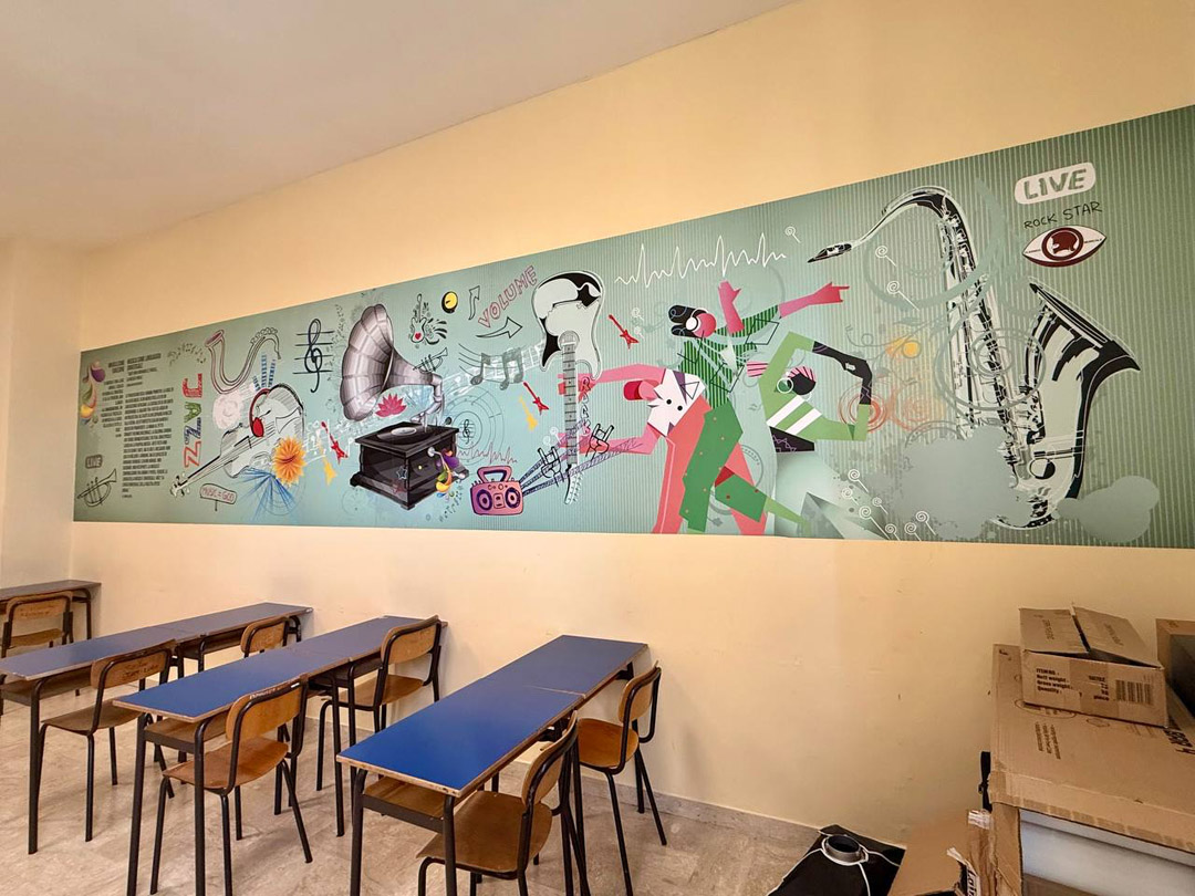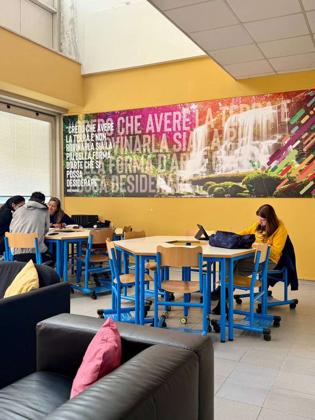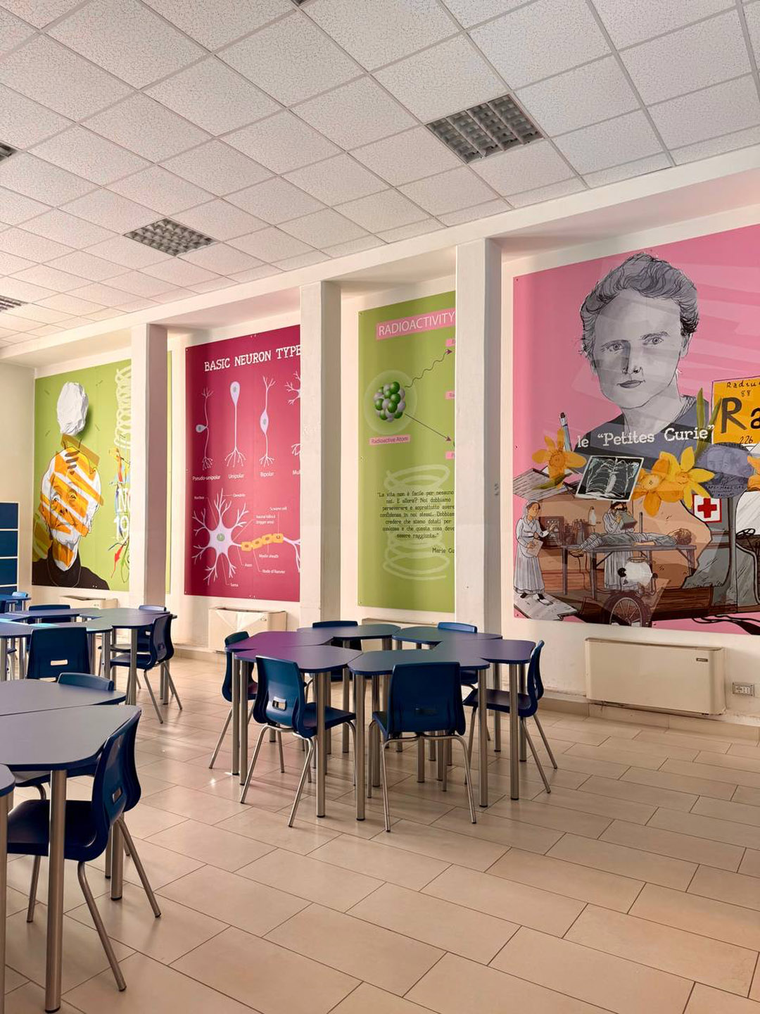 Dalle decorazioni murarie alle soluzioni per pavimenti, dalla segnaletica direzionale alle tecnologie interattive (HyperWall!), abbiamo costruito ambienti scolastici coinvolgenti, funzionali e sostenibili.